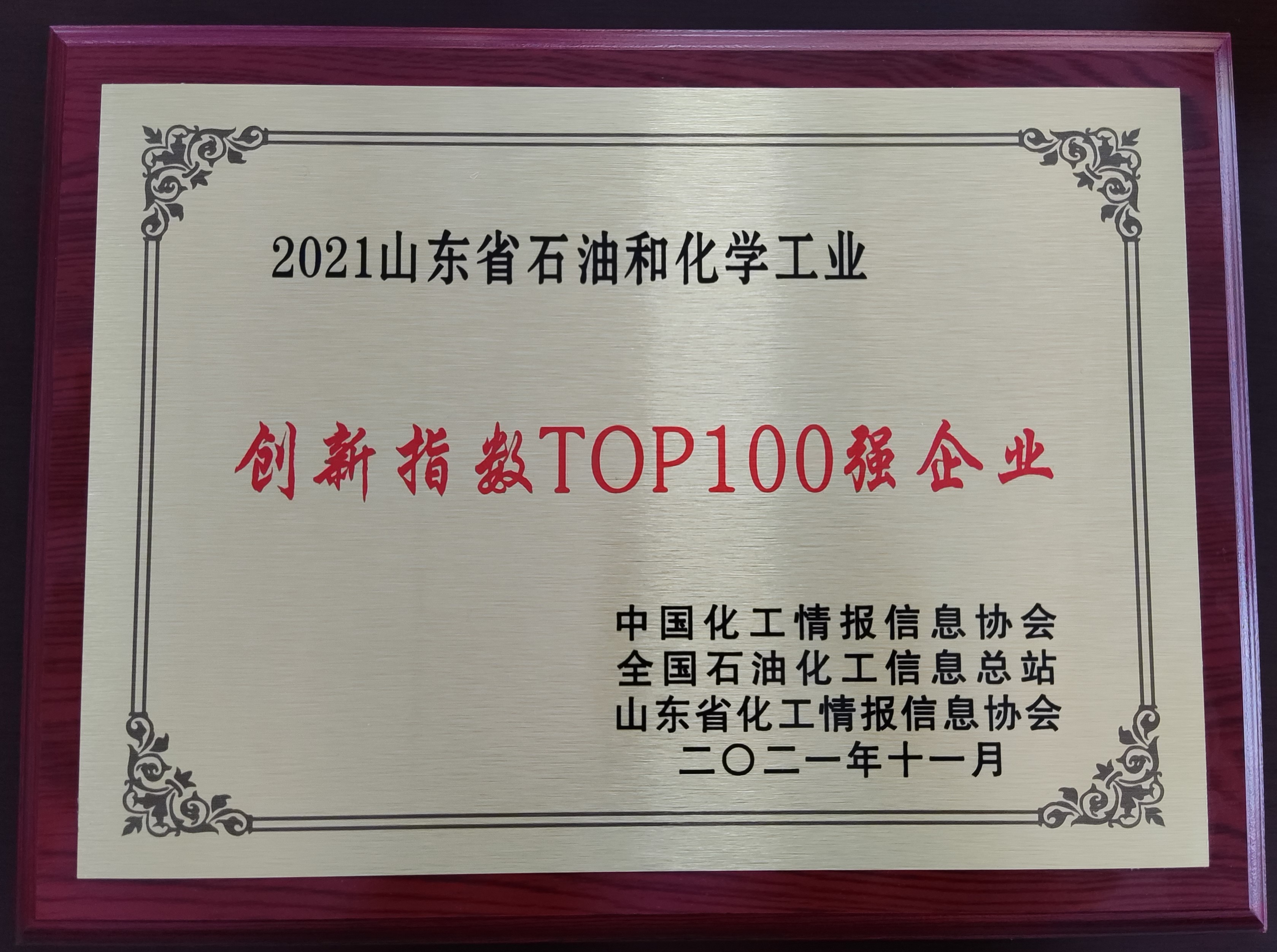 11月23日至24日,由山東省化工情報(bào)信息協(xié)會(huì)主辦的2021(第十一屆)中國化工產(chǎn)學(xué)研高峰論壇在東營廣饒召開。論壇峰會(huì)舉行了“2021化工年度精英人物暨明星單位”頒獎(jiǎng)盛典,發(fā)布了“2021山東省石油和化學(xué)工業(yè)創(chuàng)新指數(shù)top100企業(yè)”榜單。集團(tuán)公司榮獲“2021山東省石油和化學(xué)工業(yè)創(chuàng)新指數(shù)top100企業(yè)”稱號(hào)。