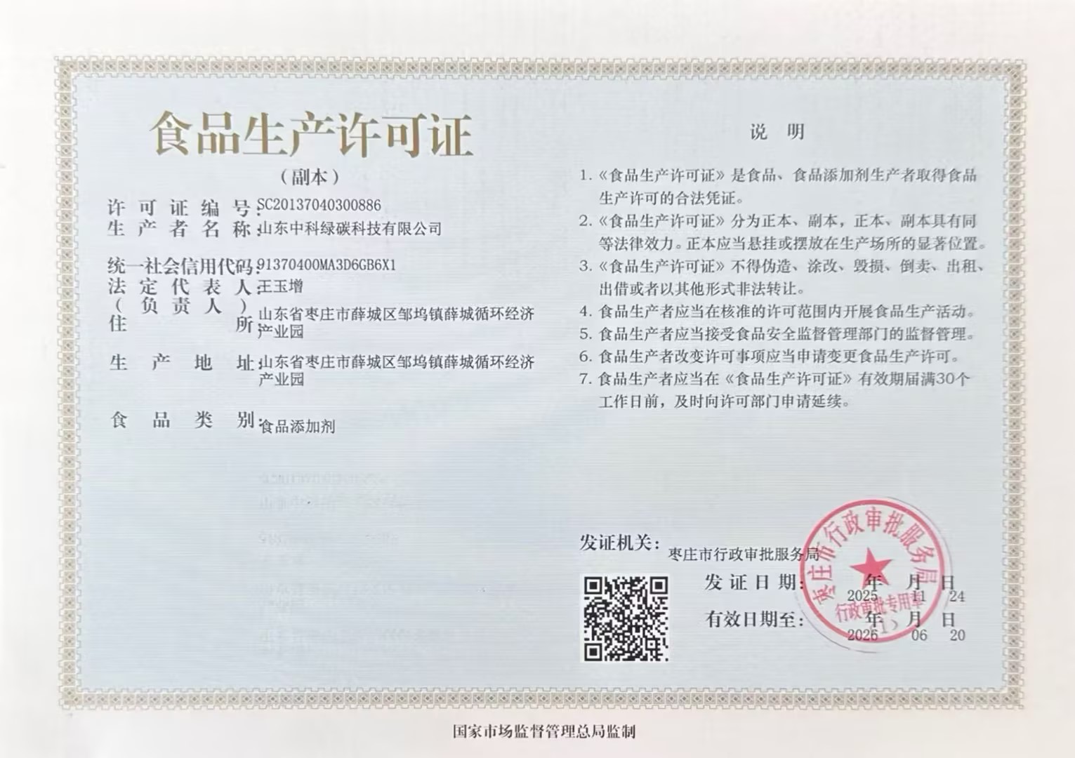 山東中科綠碳科技有限公司系上海中科綠碳化工科技有限公司全資子公司,由山東濰焦控股集團(tuán)有限公司、上海中科奧凱企業(yè)管理有限公司共同出資組建。公司設(shè)有院士工作站,并依托中國科學(xué)院上海有機(jī)化學(xué)研究所自主研發(fā)的專有技術(shù),專注于食品添加劑生產(chǎn)、綠色節(jié)能化學(xué)、化工新技術(shù)開發(fā)及化學(xué)工程項目工藝包研制,是國內(nèi)以食品級碳酸氫銨生產(chǎn)、中試放大、技術(shù)服務(wù)為核心業(yè)務(wù)的國家級高新技術(shù)企業(yè)。 公司注冊資金 9800 萬元,占地面積約77 畝,CO2資源化利用合成食品添加劑產(chǎn)能15萬噸/年(原廠址濰坊振興焦化有限公司),通過回收園區(qū)內(nèi)排放的CO2實現(xiàn)資源化利用,產(chǎn)品碳酸氫銨純度高、質(zhì)量優(yōu)良,每年可減少3000萬標(biāo)方溫室氣體排放(相當(dāng)于3萬輛家用轎車年CO2排放量),具有突出的社會效益與經(jīng)濟(jì)效益。